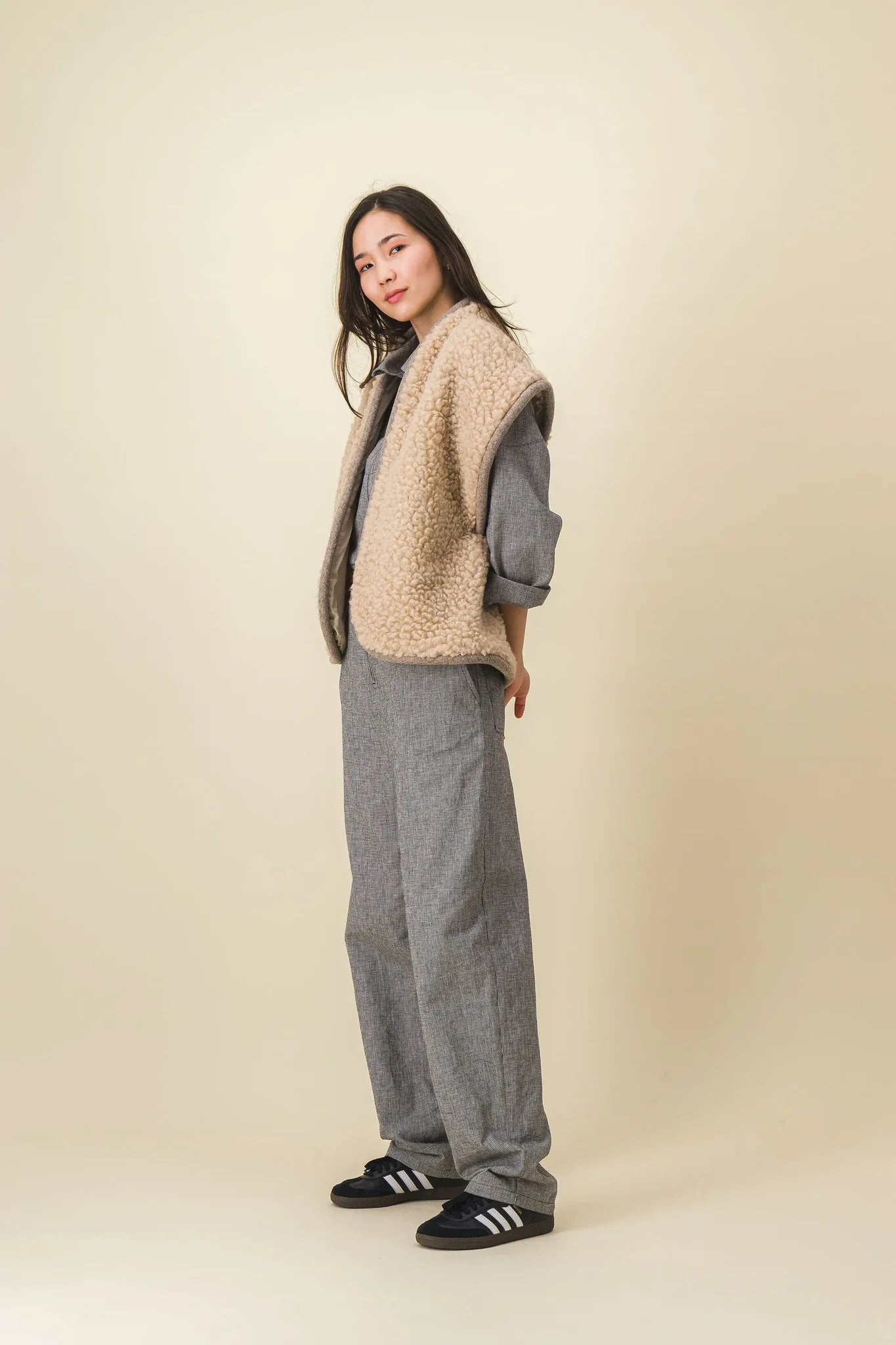 Chaleco oversize borreguito ribeteado en pañoÂ