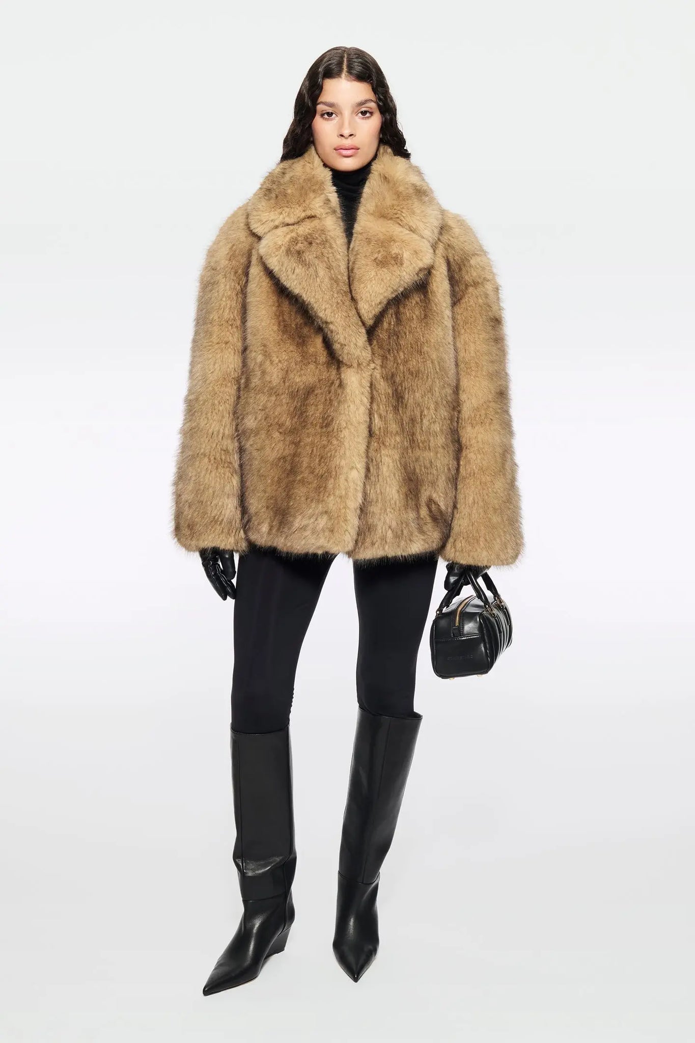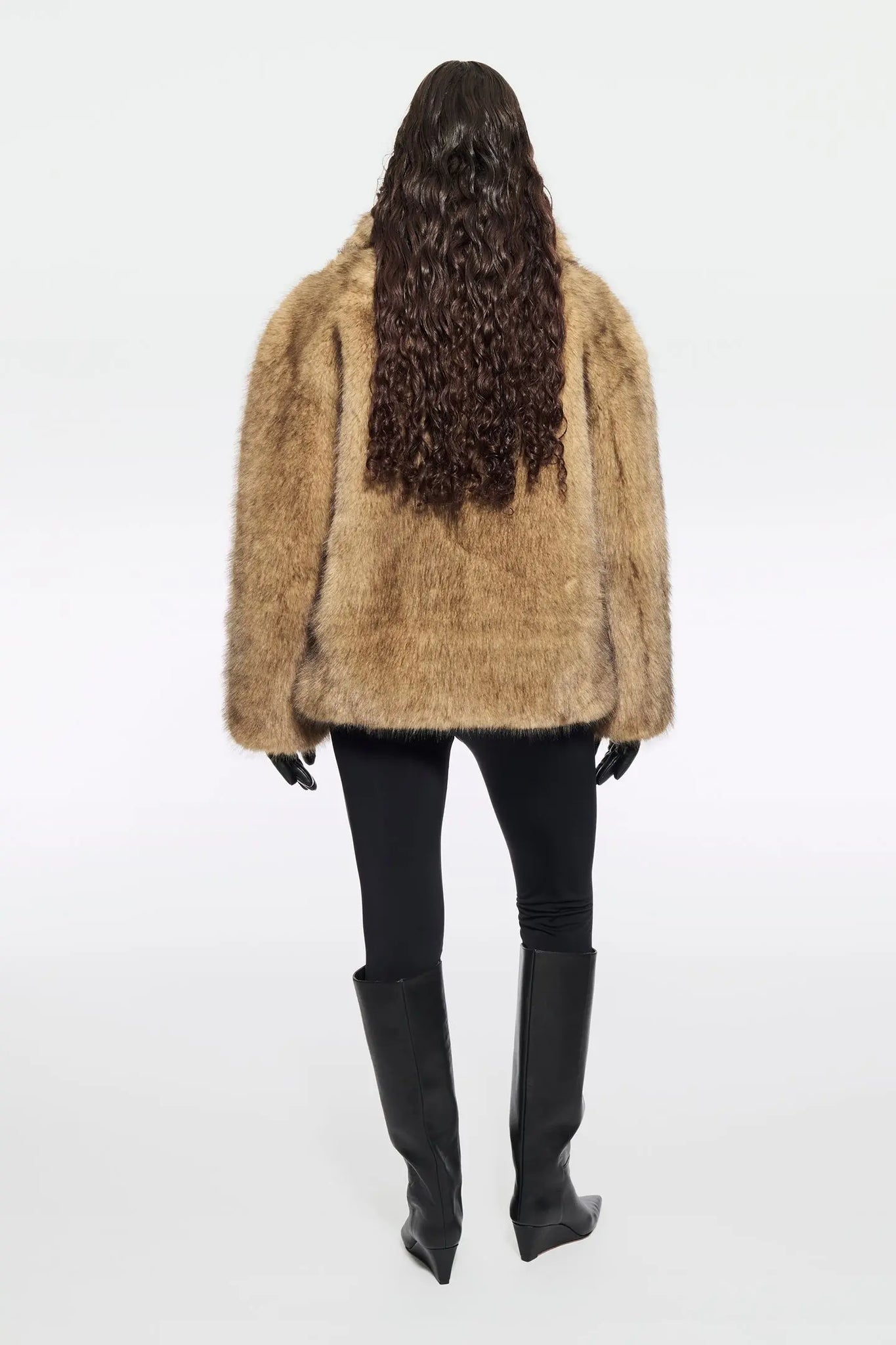 La chaqueta Valentina está confeccionada en piel sintética, con un corte holgado y una silueta recta. Cuenta con bolsillos ocultos, un cierre de corchetes sencillo y está completamente forrada.