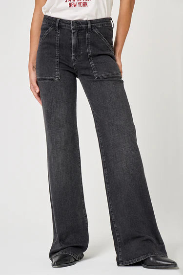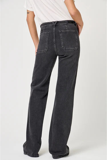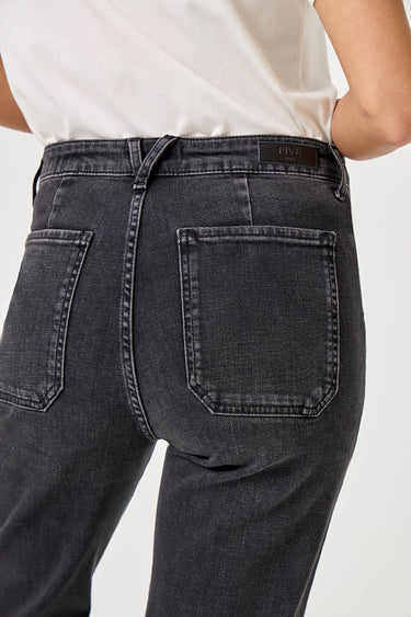 Cierre con botón de la marca FIVE y cremallera oculta bajo la solapa.