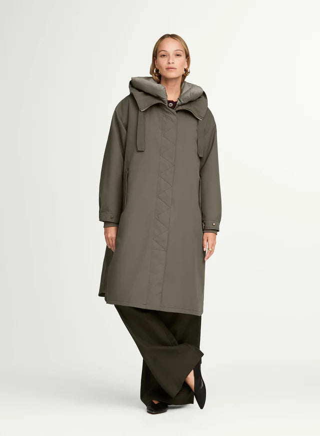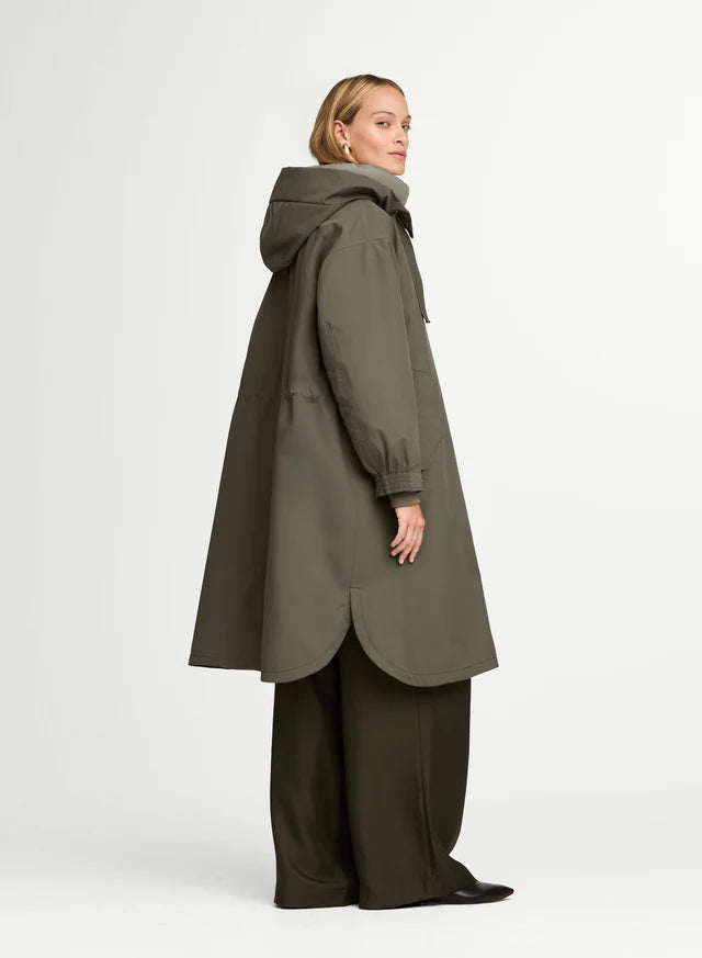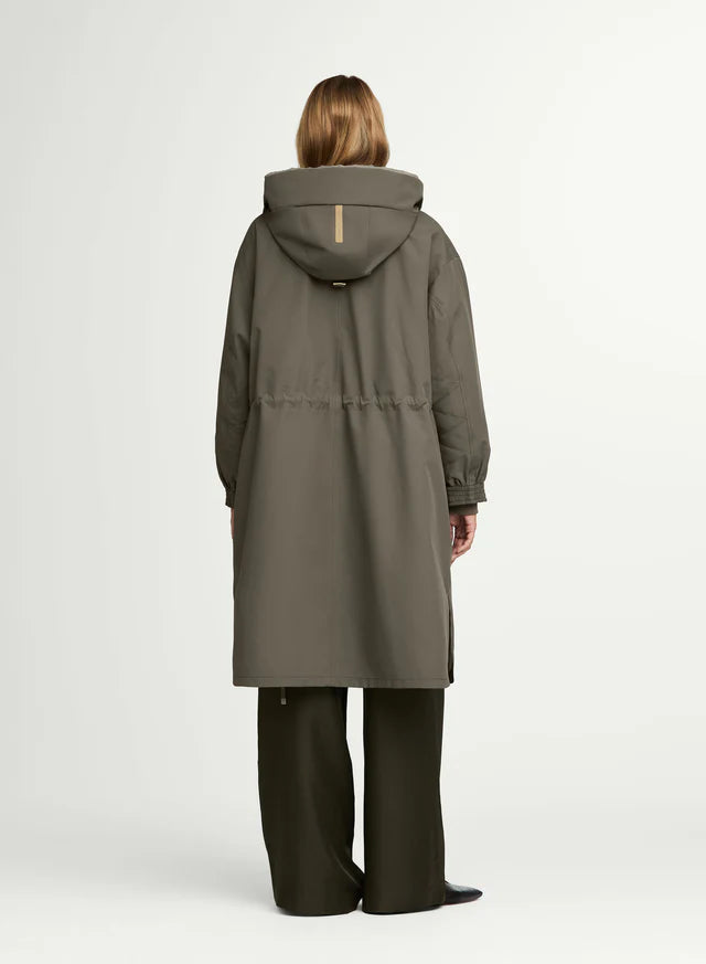 - Silueta variable mediante cordĂłn interno en la cintura trasera.