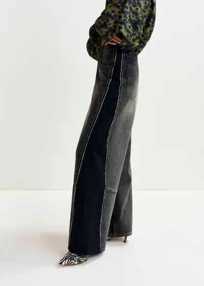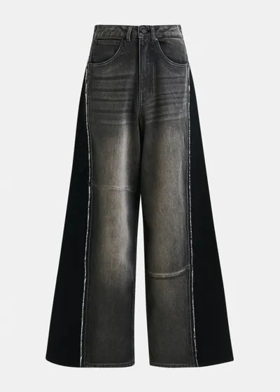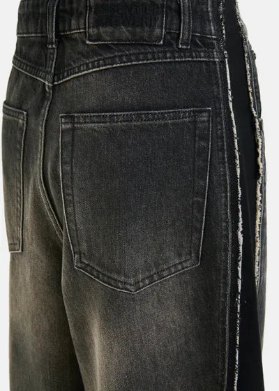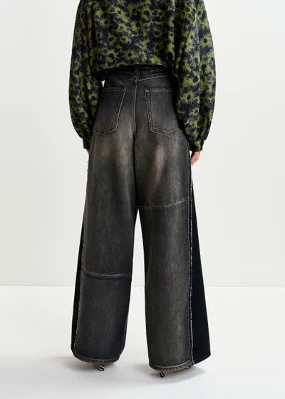 Confeccionados con una mezcla de algodón, estos vaqueros están diseñados para un ajuste relajado con una cintura de talle bajo y una silueta de pernera muy ancha. Las costuras horizontales y los dobladillos sin rematar les dan un toque deconstruido. Destacan los atrevidos paneles laterales en contraste. Acabados con una clásica confección de cinco bolsillos, un cierre de cremallera y botón y trabillas para el cinturón, estos vaqueros son toda una declaración de intenciones.