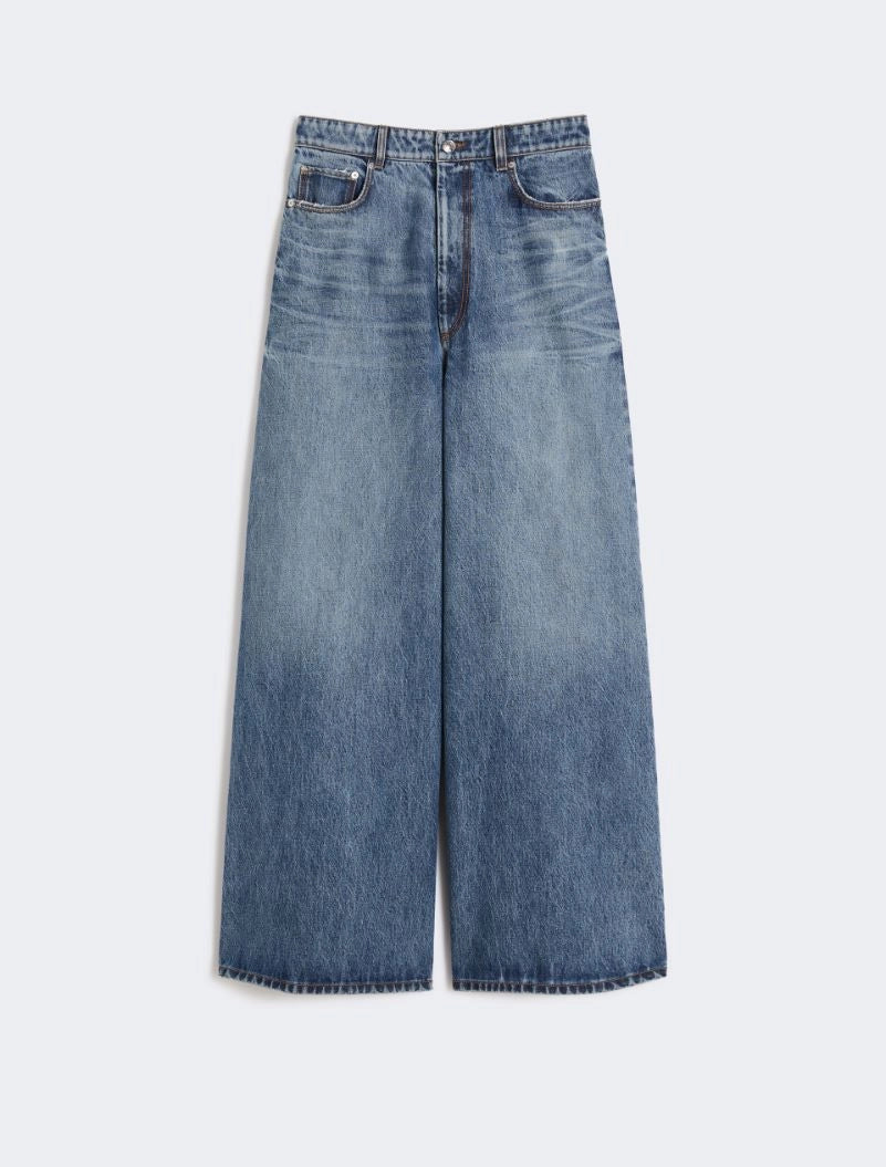 Nuevos jeans oversize con volumen, confeccionados en denim índigo sin elasticidad. La cintura y la entrepierna bajas, combinadas con un corte ancho, crean una silueta moderna.
