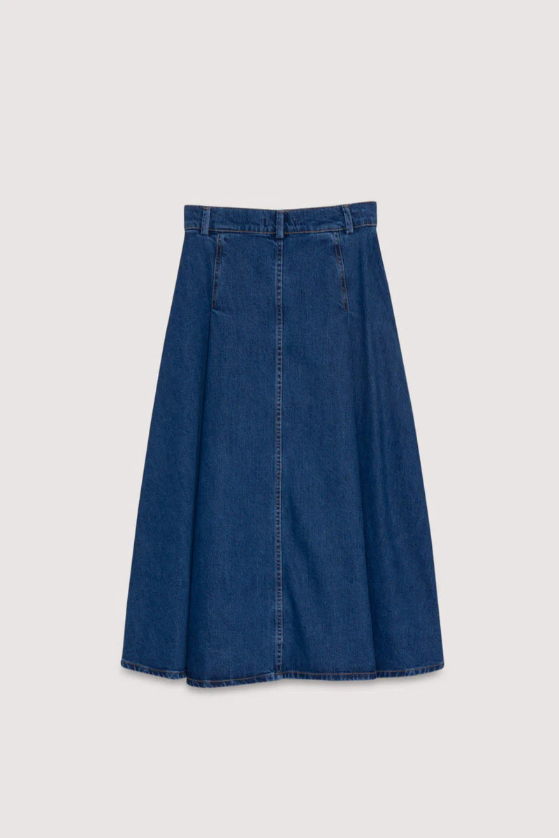 Esta clásica falda larga de mezclilla presenta una favorecedora silueta en forma de A con detalles plisados tanto en la parte delantera como en la trasera, que le aportan movimiento y estilo sutiles. Una prenda versátil, perfecta para cualquier temporada.
