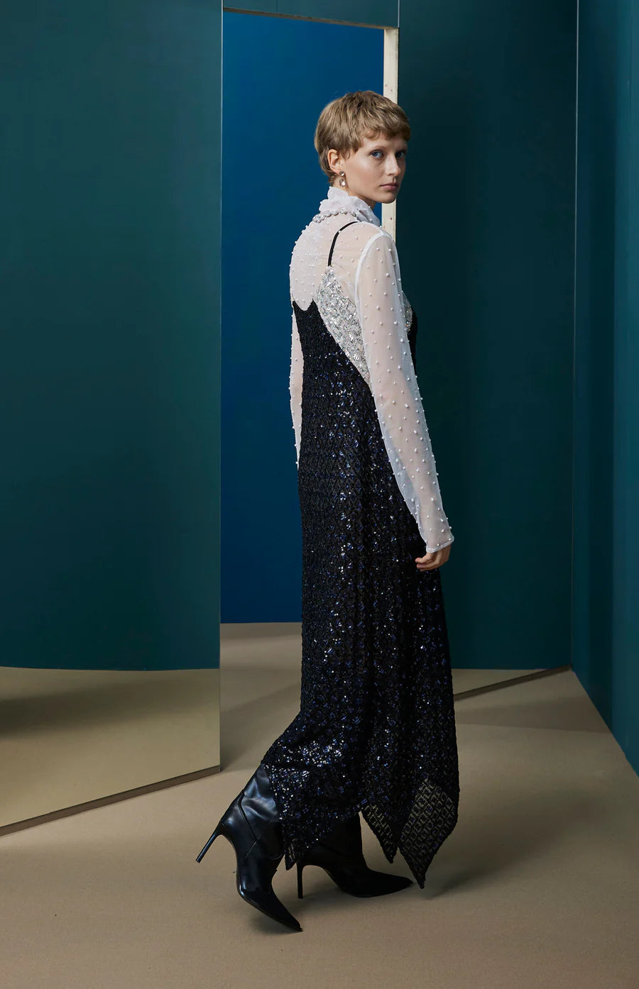 Vestido tirantes de lentejuelas , bajo asimétrico